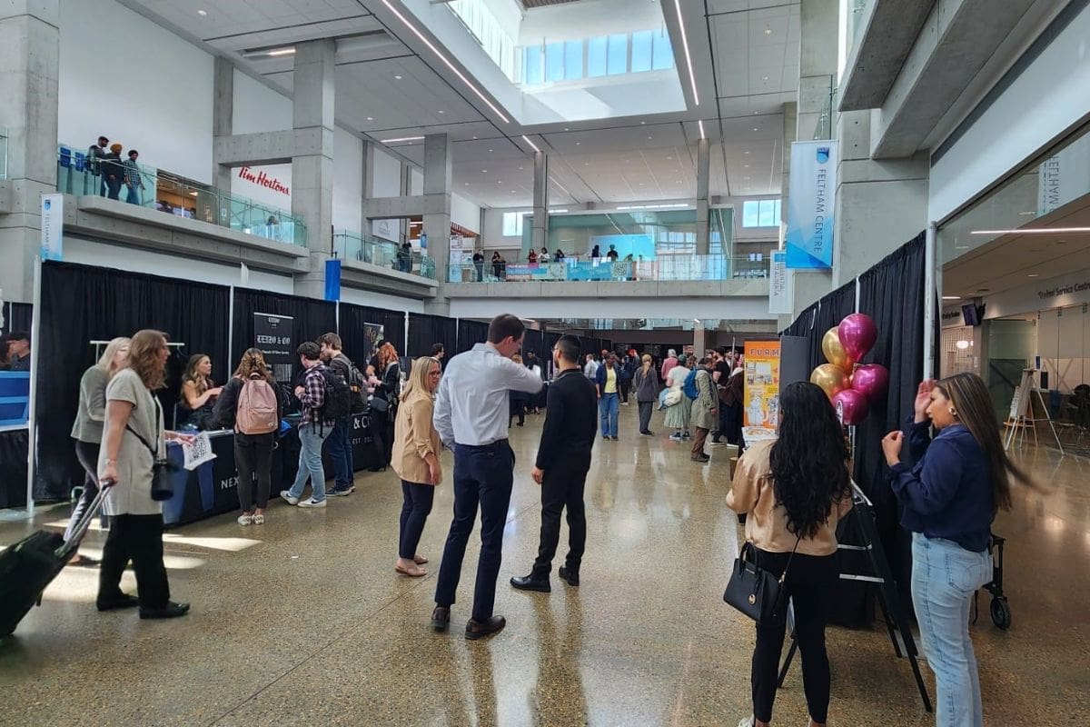 The event took place on the afternoon of April 10 on the main floor of the NAIT Feltham Center (CAT building). Students and recent graduates could sign up to receive a free booth to showcase their projects. A total of $8,000 was awarded in four categories: Most Innovative Solution and Best Community Solution, presented by Panama Enterprises Inc., and the People’s Choice Award and the Most Engaging Booth, offered by the JR Shaw School of Business.