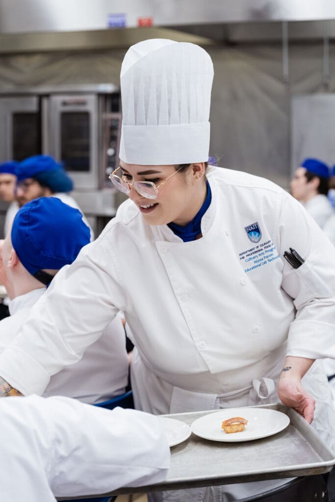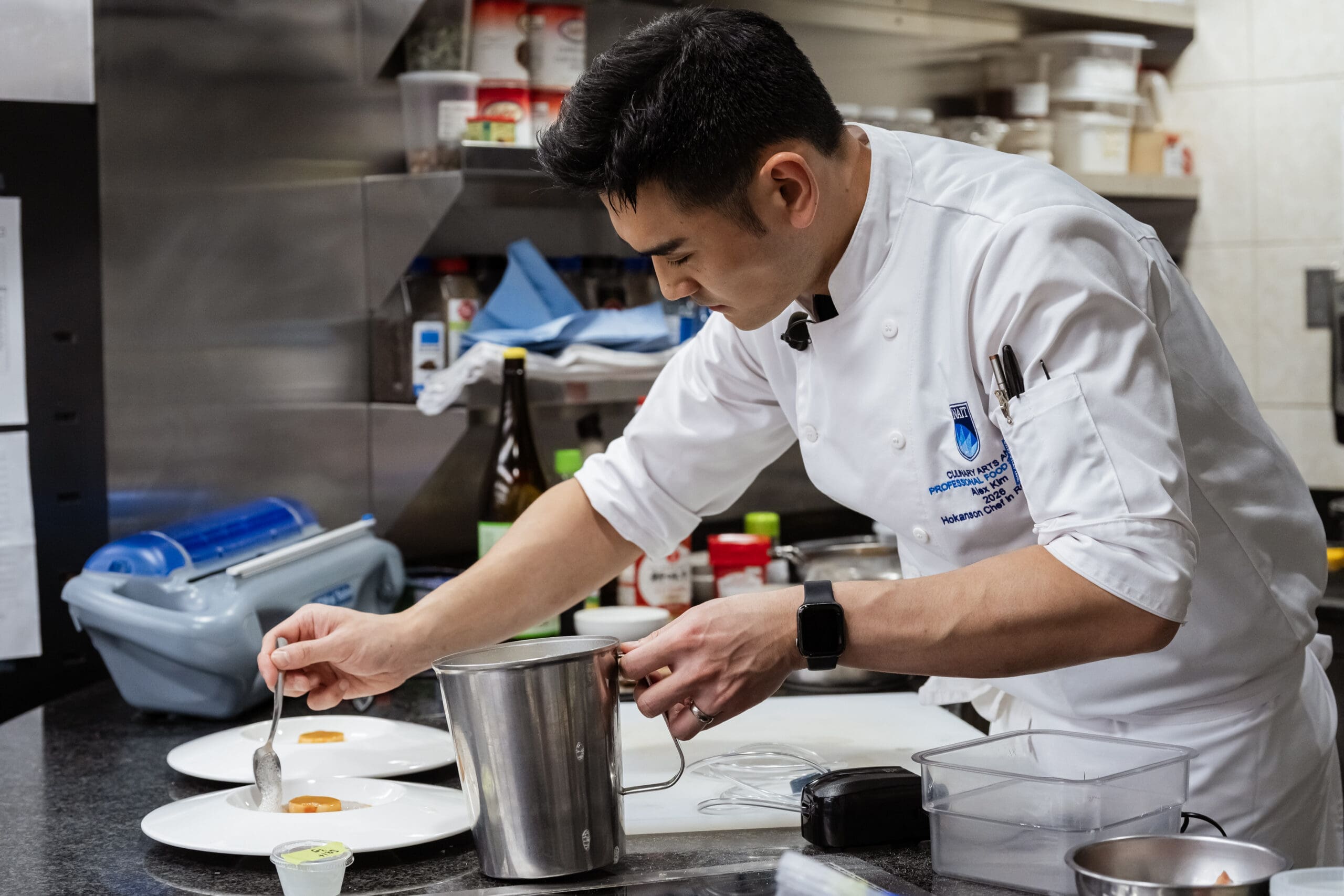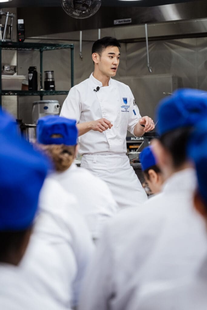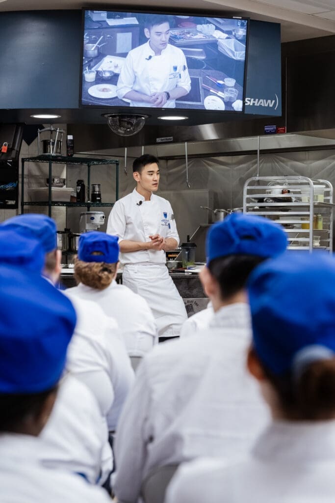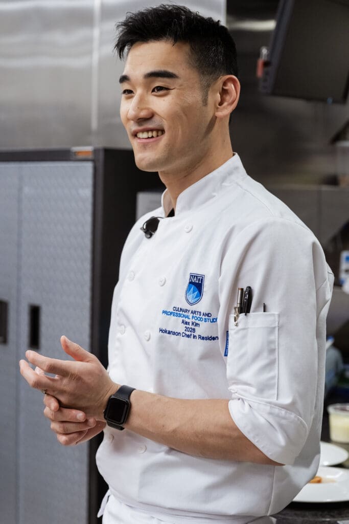 Chef Alex Kim, Culinary Director at Five Sails in Vancouver, returned to campus as NAIT’s 2026 Hokanson Chef in Residence.